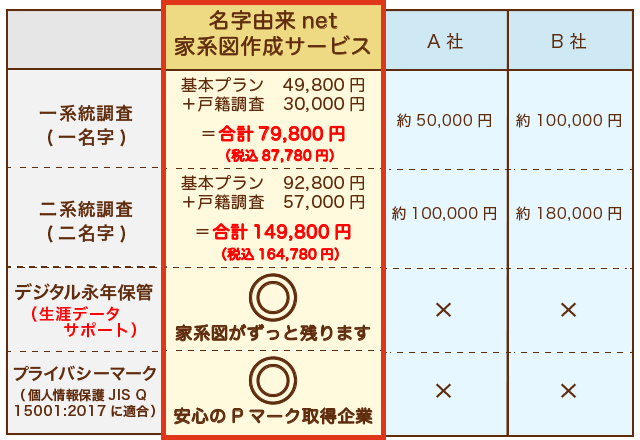 現地調査が必要な場合も稀にございますが、名字由来net では主に戸籍や除籍を独自調査で遡ることにより家系図を作成していきますので、安心してお任せ下さい。